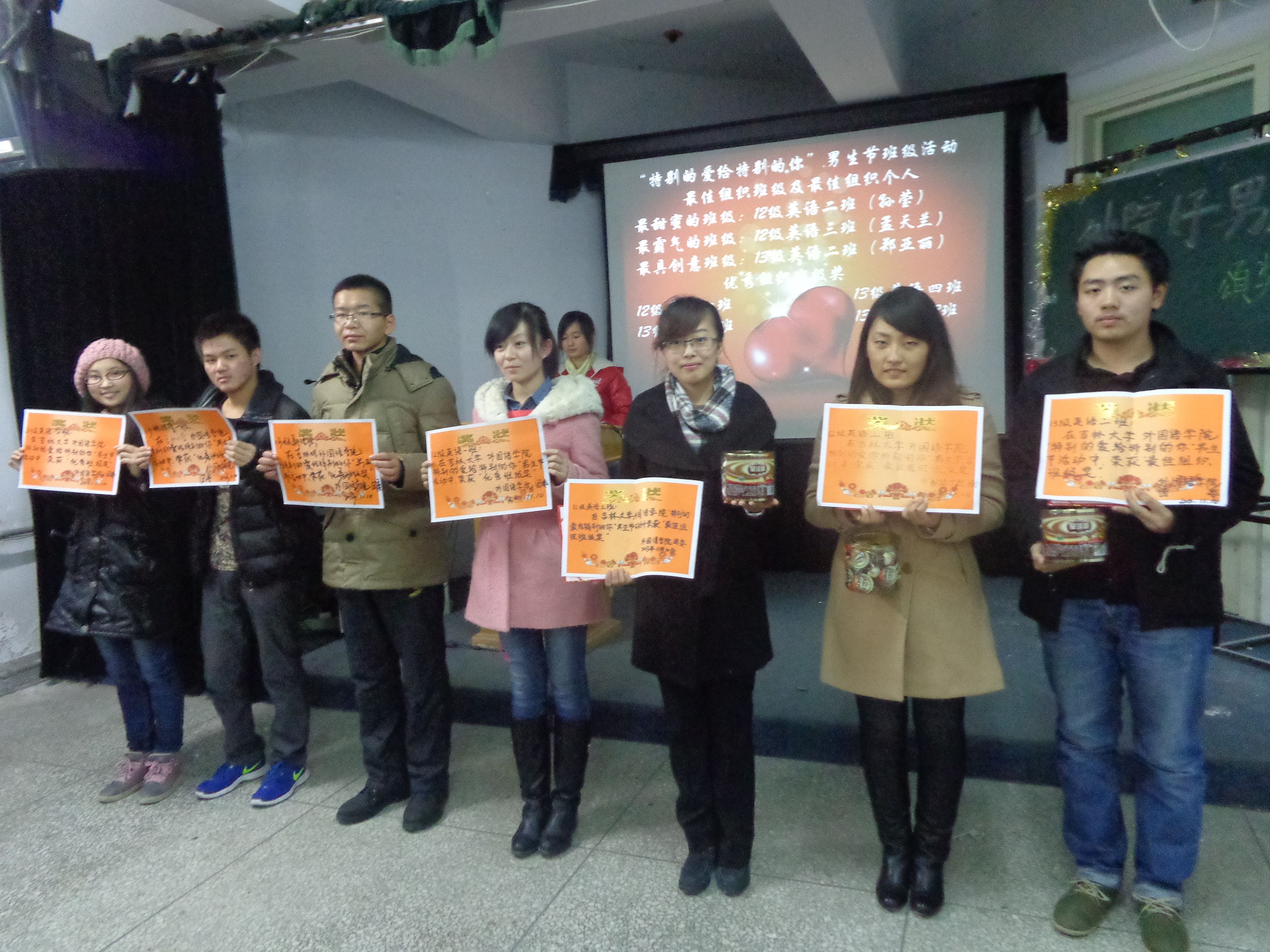 活动之二是“外院十佳好男人”评选。本次活动从大一大二男生中评选出十个勤劳朴实又不乏才艺的优秀男生。经过各年级女生们的集体投票,“外院十佳好男人”隆重出炉,对于在本次活动中组织良好、活动积极的班级给予了优秀组织奖。并于11月10日晚在外语楼508举行了颁奖晚会,以PPT、视频播放以及现场表演的形式全方位展示他们的学习生活,随后,获奖男生进行了才艺展示。整个晚会笑声不断,气氛相当融洽。