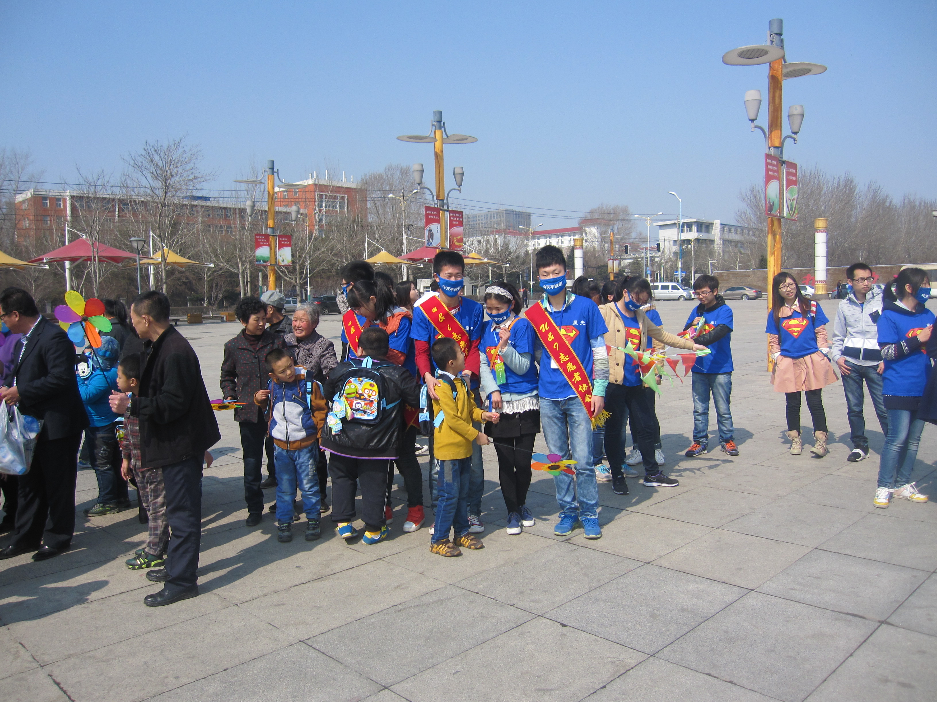 U&I协会如期开展了本学期第二次自闭症儿童关爱活动。志愿者们带着“装备”来到锦江广场,陪自闭症儿童玩轮滑。虽然孩子们刚开始非常害羞,但在志愿者们的积极沟通,自闭症孩子们终于和志愿者们打成一片,玩起了平地“飞翔”,随后又搭起了“人造拱桥”,让孩子们带着小小的成就感穿过重重“障碍”。欢声笑语荡漾在广场的上空。