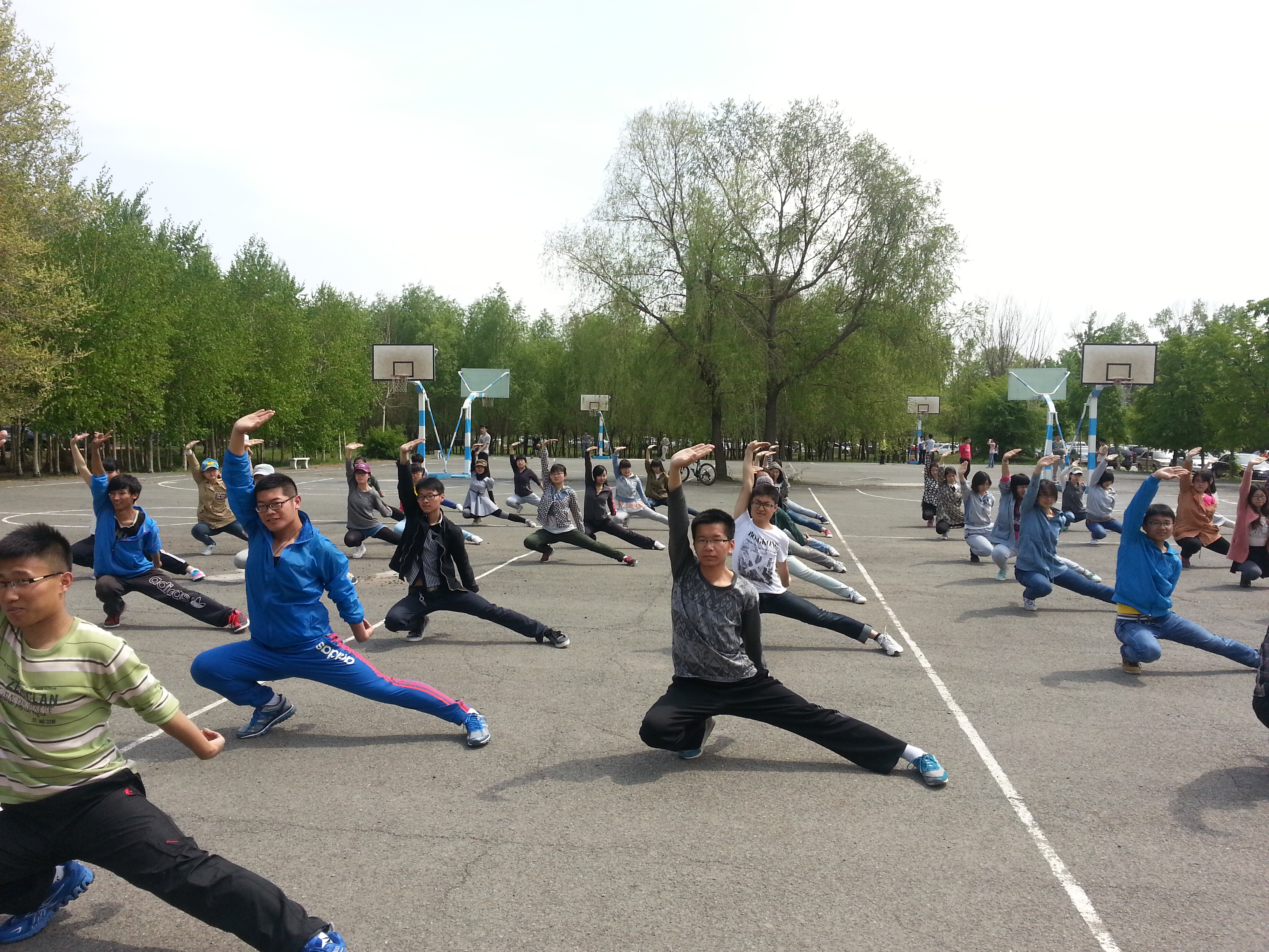 高度重视,并迅速召开三路长拳训练协调会,就训练对象、训练时间、教练团队等内容作了部署。四月中旬开始,60余名大一同学参加了训练。每天中午12点20,同学们匆匆吃完午饭就赶到萃文广场集合,开始白天的训练,一直持续到下午1点10分;晚上8点40,下了晚课的同学们又抓紧时间到麦克德尔米德实验室后的空地上集合,直到晚上10点钟才训练结束,拖着疲惫的身躯返回寝室。中午的骄阳炙烤着同学们的脸庞,也见证着他们的成长;夜晚的路灯拉长着他们的身影,也见证着他们的坚忍。在马步、弓步的扎实排列中,他们一步步地完善着每个动作;在喊声震天的口号声中,他们一点点地蜕变、成熟。值得一提的是,占训练队伍中大多数的女生,自始至终没有喊累,没有退缩,用“女汉子”的精神完美展现中文a片