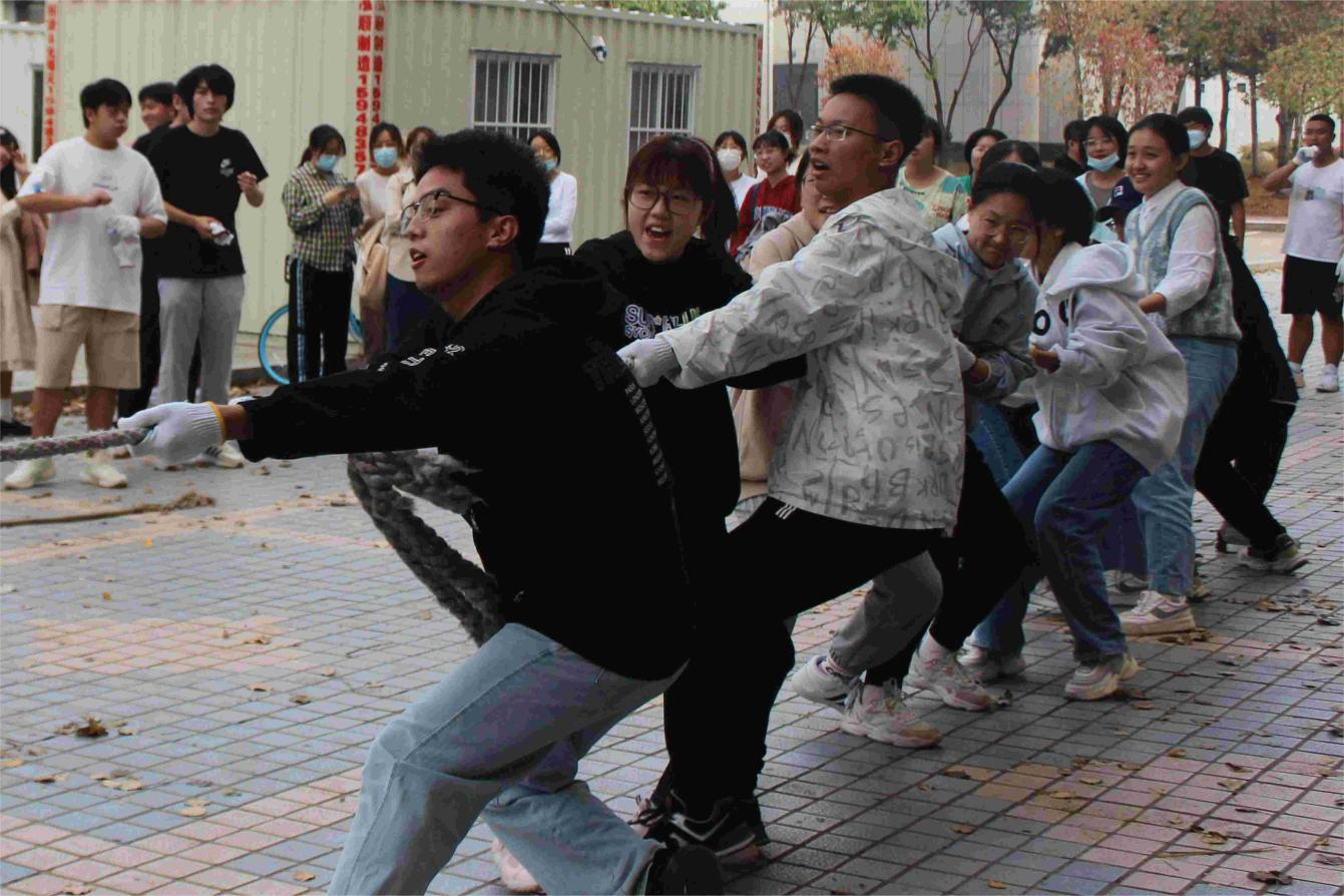 裁判宣布比赛规则后,比赛正式开始。在紧张的气氛中,同学们自发组成的拉拉队为各自班级的队伍呐喊助威,队员们咬紧牙关,拉拽着手中的长绳。战局屡次惊险逆转,最终2022级英语一班获得冠军,2022级俄语二班获得亚军,2022级俄语一班获得季军。