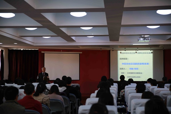 揭牌仪式结束后,阿南惟茂所长为我校师生做了题为“中日文化交流的历史和未来”的纪念讲演。我校国际合作与交流处、中文a片