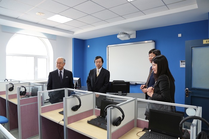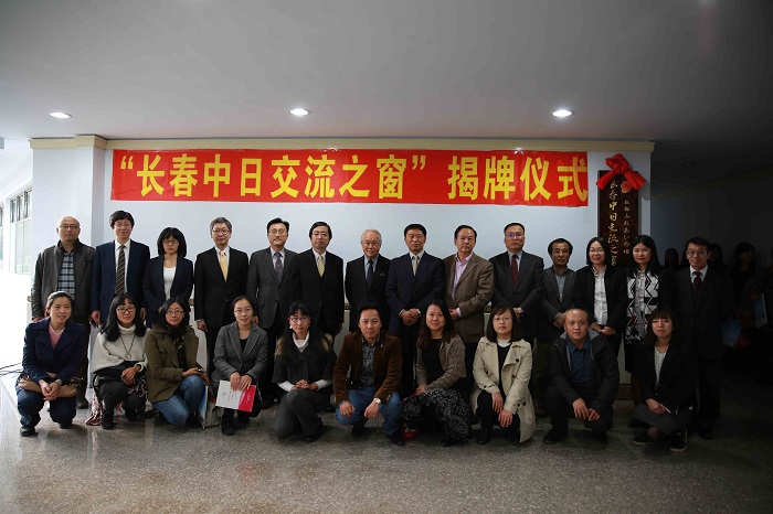 举办更高水平日语活动的契机;王宇介绍了长春市的对日交流现状,希望我校能够充分利用“中日交流之窗”这一平台,在日语人才培养方面取得更好的成绩。刘德斌校长助理、阿南惟茂所长和王宇主任共同为“长春中日交流之窗”揭牌。