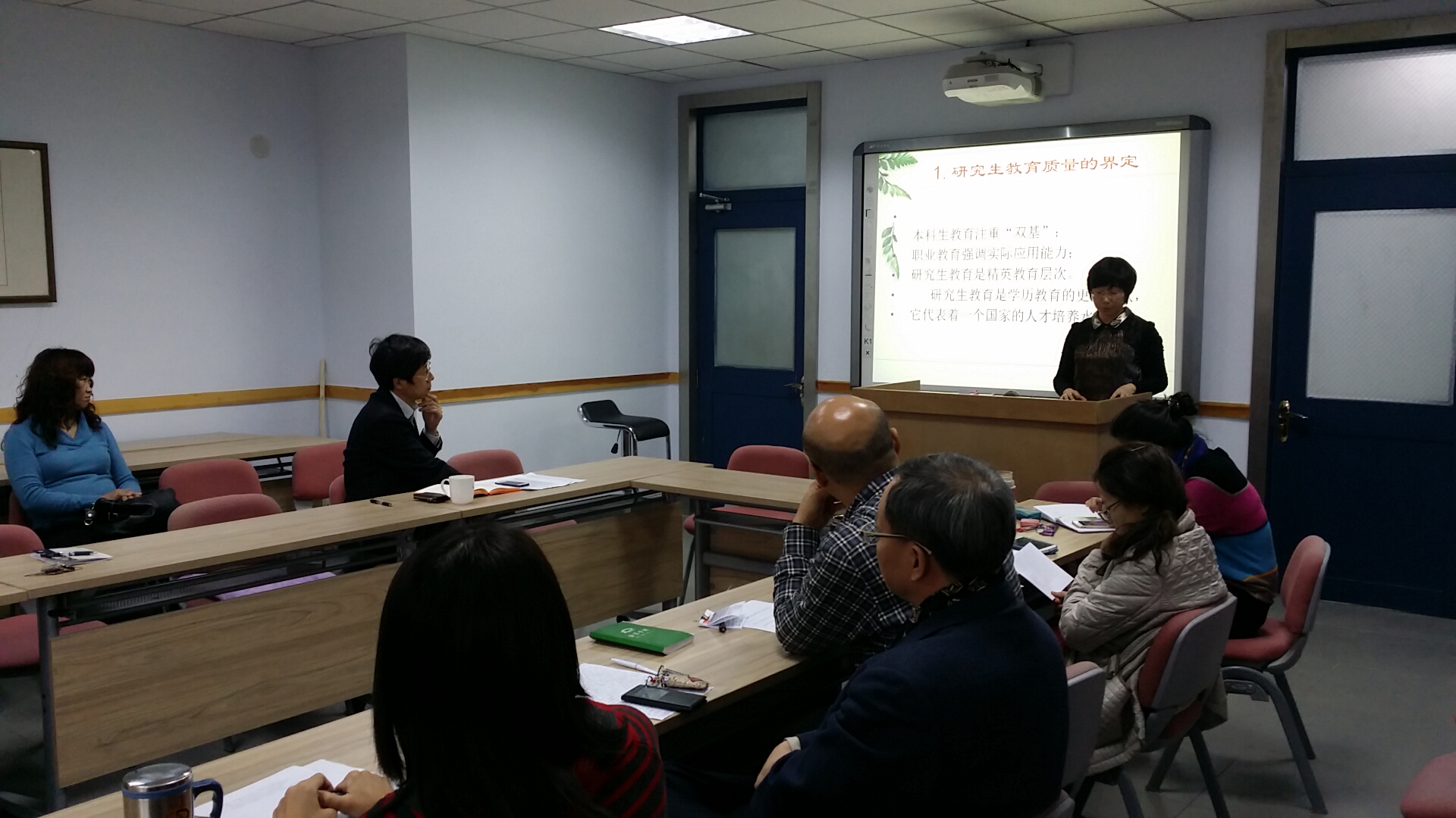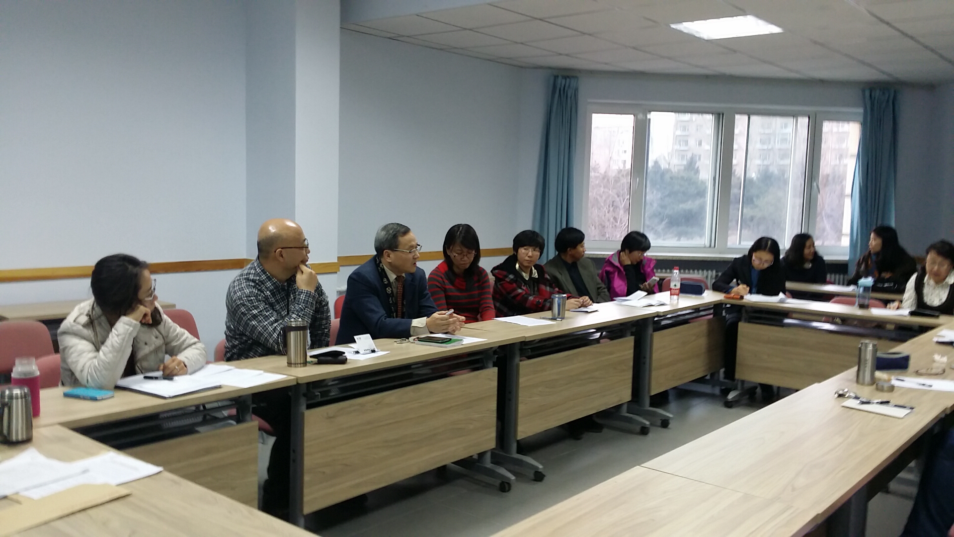 在外语楼216室召开了本学期研究生培养工作研讨会。院长周异夫、各业务副院长、各系主任、副主任、以及全院12个学位授权点的研究生导师和授课教师参加了研讨会。会议由分管研究生工作的副院长张玫玫主持。