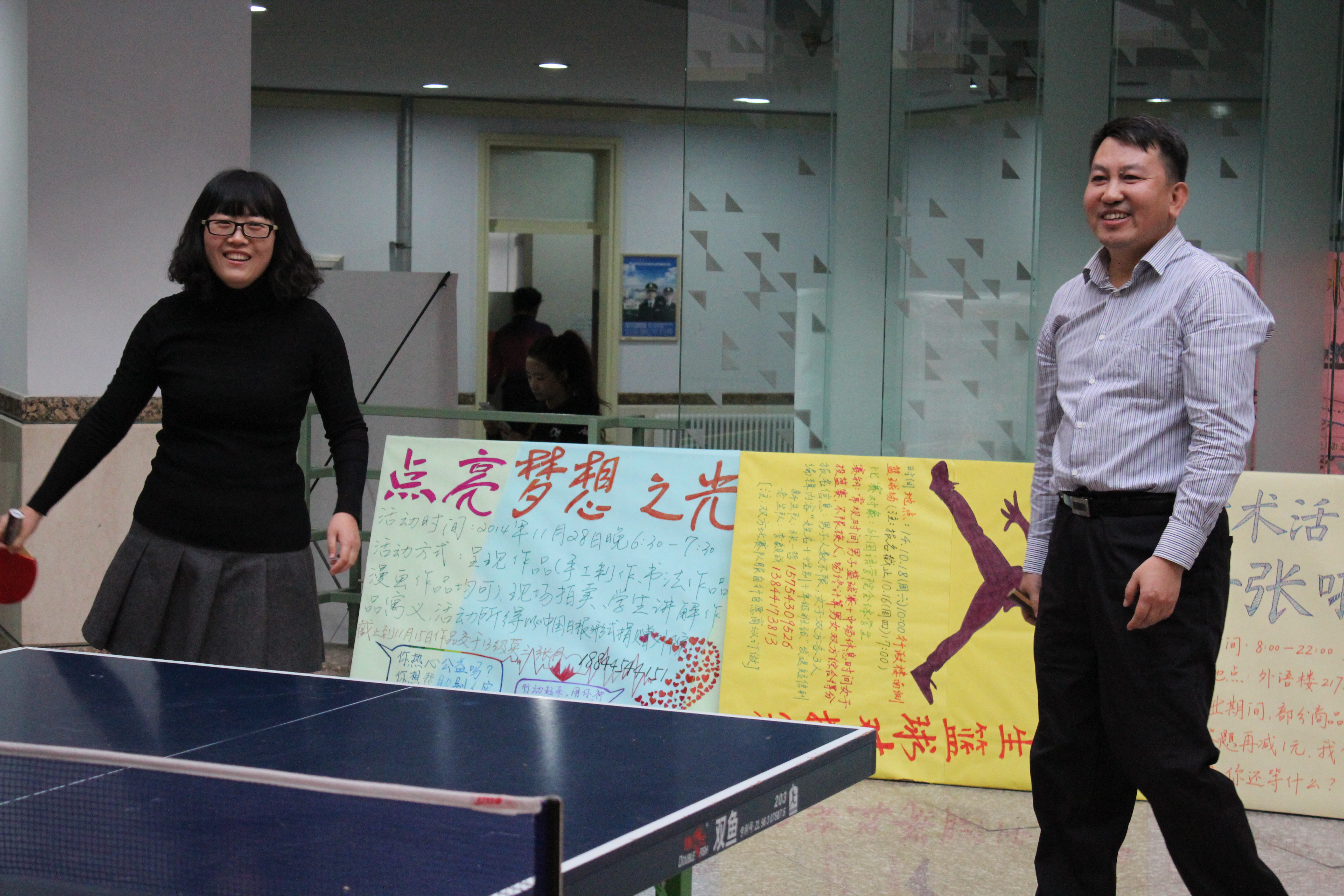 于11月7日下午在外语楼一楼大厅举办了第十五届“教师杯”乒乓球比赛。比赛项目包括男子单打,女子单打,男子双打,女子双打及混合双打五项,比赛规则采用国际标准(比赛为5局3胜制),实行淘汰制。