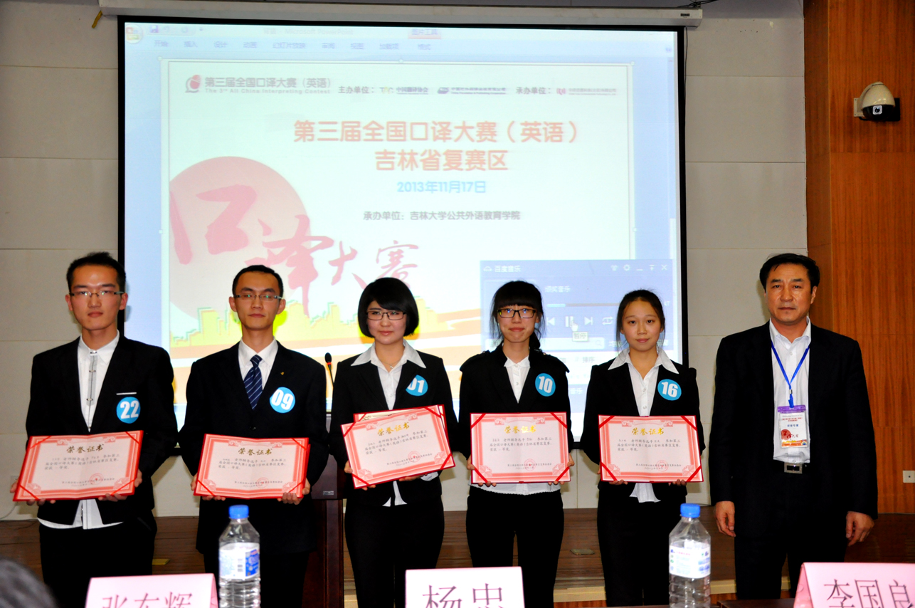 英语系口译专业2013级研究生赵丹同学,凭借其扎实的翻译功底以及沉着冷静的临场应变,在第三届“中译杯”口译大赛(英语)吉林省复赛中获得二等奖的优异成绩,并将于12月代表吉林省赴大连参加该赛事的东北地区赛。