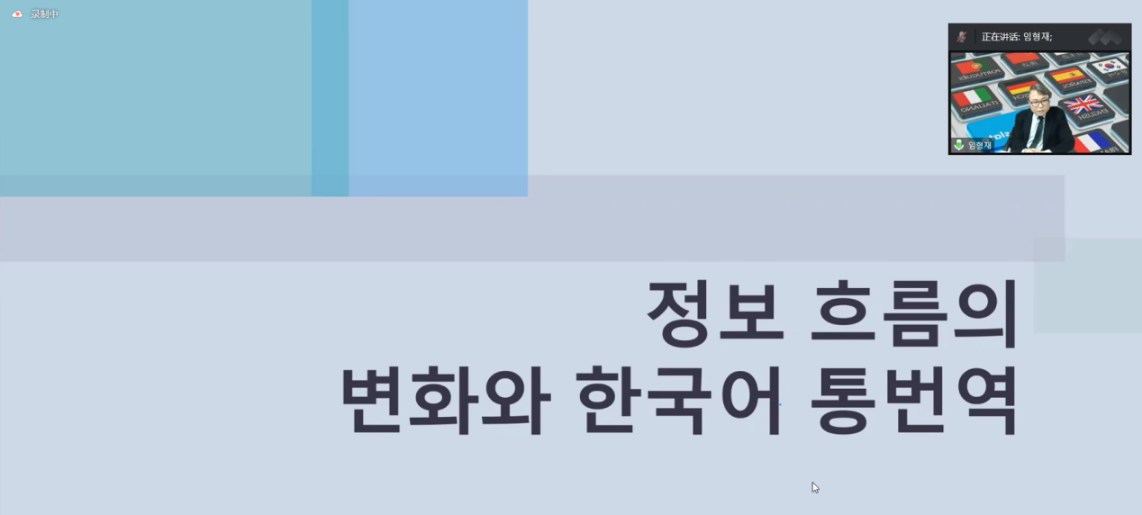 首先,林亨栽教授向我们阐述了翻译的时代价值。之后林教授向我们传达了信息在不同时期的特点,新时代的信息流已经较以往发生了很大的变化。随后,林亨栽教授立足于新的发展阶段,指出信息共享使我们当前翻译事业发生了很大变化,机器翻译+译后翻译服务已经成为一种备受瞩目的翻译模式,这种新变化对韩国语教育和学习也是一种新的挑战。林亨栽教授通过图表和举例的方式让我们对信息流的变化有了清晰的认识,在场师生受益匪浅。