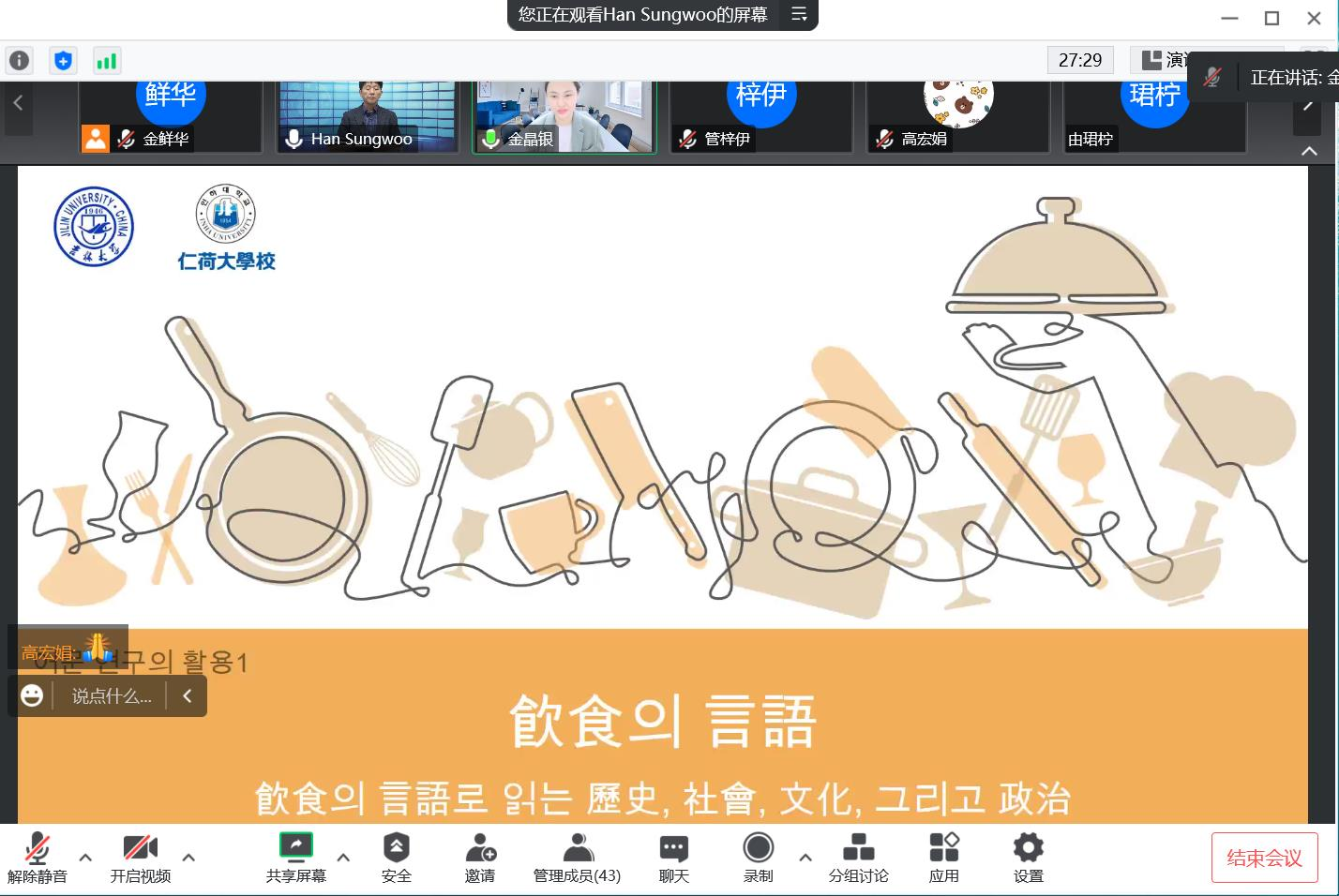 进行了一场题为“韩国语研究和学习:饮食语言”的讲座。