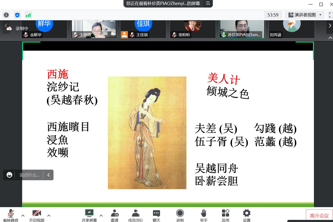 邀请,成均馆大学比较文化研究所长、成均馆大学国语国文学科朴珍英副教授在云端通过腾讯会议平台以“翻译与东亚女性”为主题进行了2个小时的学术讲座,讲座由朝文系教师王艳丽主持,参加讲座的人员有中文a片