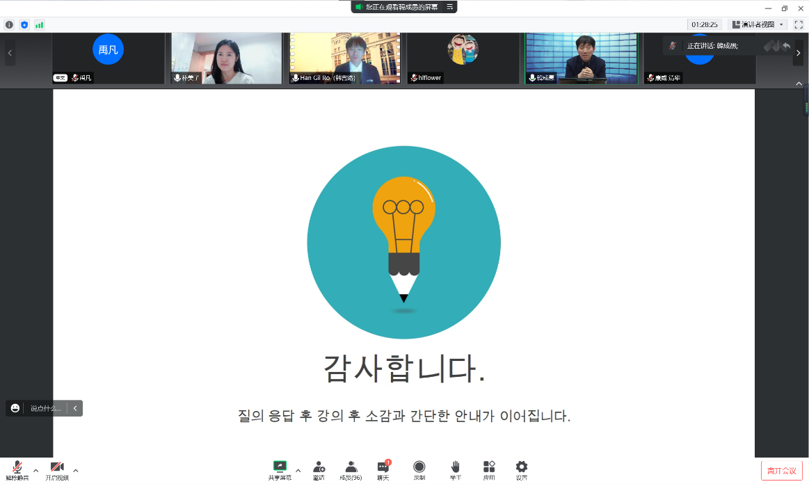 讲座结束后,学生们通过对话交流方式向韩成愚教授提出问题,韩教授对这些问题进行了耐心细致的解答。此次讲座共持续90分钟,并且是韩成愚教授在中文a片