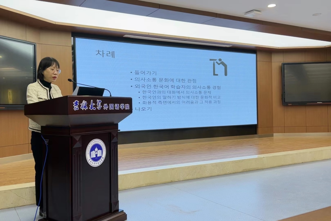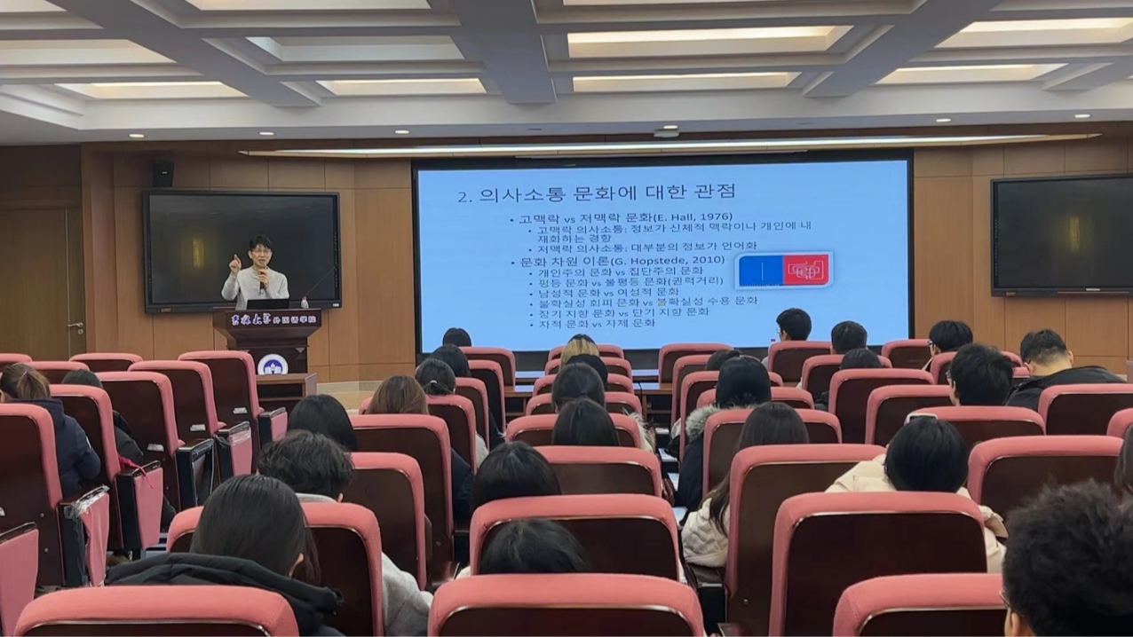 讲座伊始,闵丙坤教授首先介绍了韩国的语言文化,讲述了外国学习者在学习韩国语时因文化的不同而遇到的困难和问题。并通过具体的口语实例分析了韩国语口语的语言文化特征。随后闵丙坤教授从理论方面介绍了对韩国语进行口语测评的原理和步骤。讲座中,闵丙坤教授列举多个生活实例,使同学们更加深刻地理解了韩国的语言文化特征,以及为什么要进行口语测评和如何进行口语测评。